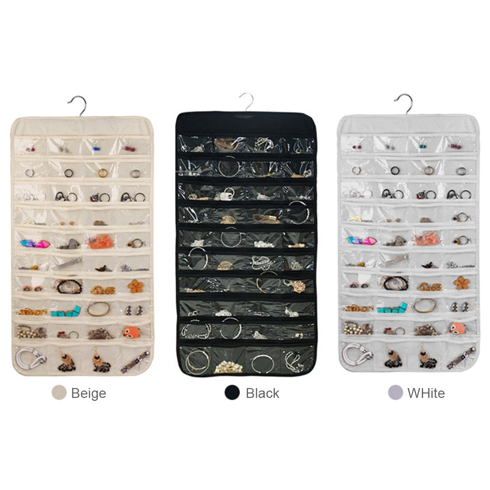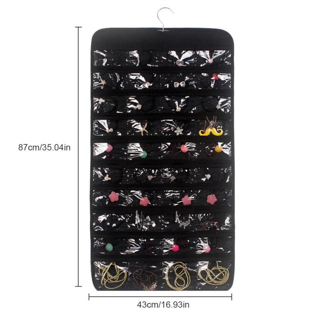 Our Double Sided Hanging Jewellery Organiser has 80 soft, clear-vinyl pockets to help protect and organise your favrioute peices of jewellery. Our Double Sided Hanging Jewellery Organiser can be stored in your home or taken with you on your travels.